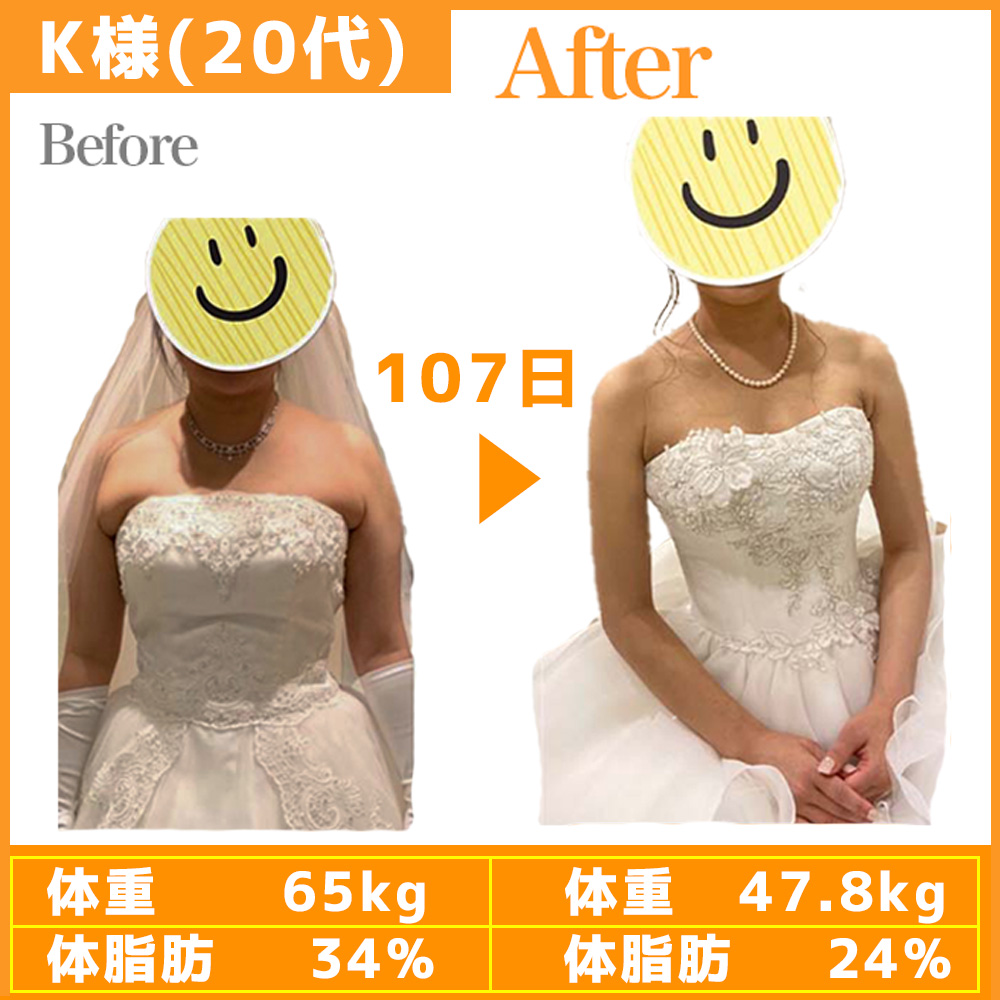 式の前撮りも楽しく撮影でき気持ち的にも前向きになれた気がしています。急激なダイエットではなく無理のない期間で18キロ痩せたので体の負担はなく以前よりも体が軽くなり楽になりました。